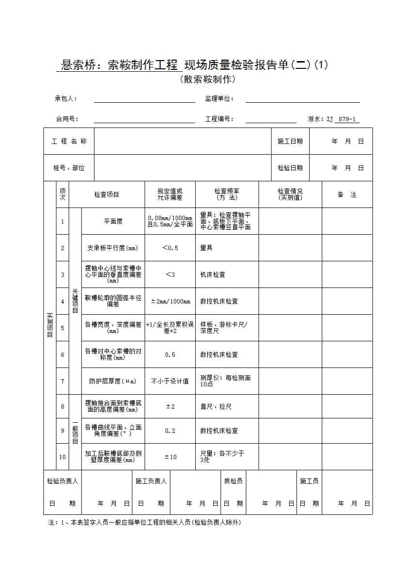 浙水:ZJ879-1 悬索桥:索鞍制作工程现场质量检验报告单(二)(1)