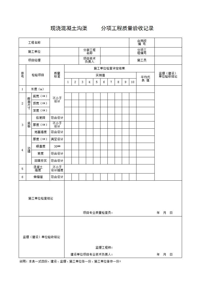 表格名称:现浇混凝土沟渠分项工程质量检验评定表09