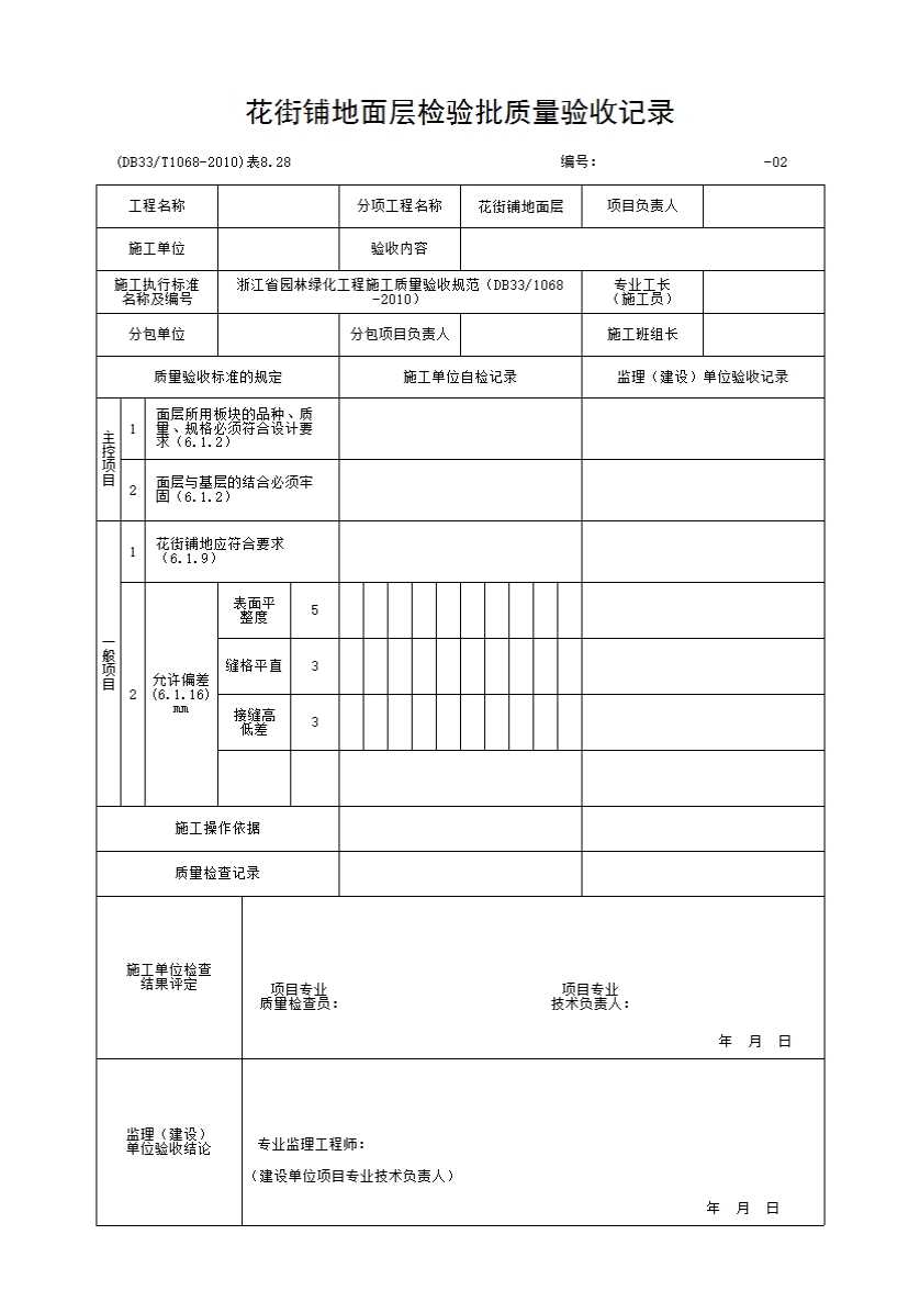 表格名称:8.28花街铺地面层检验批质量验收记录