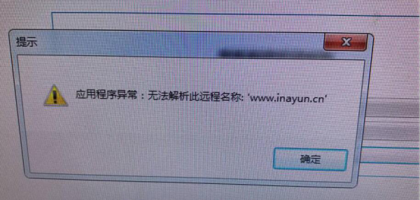 1.登录单机版 1.2加载模板:应用程序异常:无法解析此远程名称:“www.inayun.cn”: 应用程序异常:无法解析此远程名称:“www.inayun.cn” 解决办法 1.远程打开客户网页,检查客户电脑网络情况有时候用户网络问题会造成此问题。 2.咨询技术研发那边,软件是否在维护中。