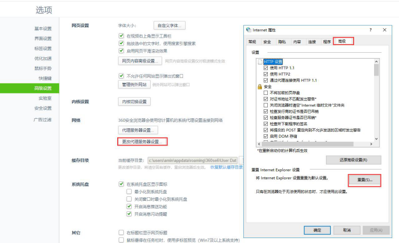 找到浏览器的设置选项,找到高级设置,重置(确定浏览器没有设置什么,可以重置的情况下重置)