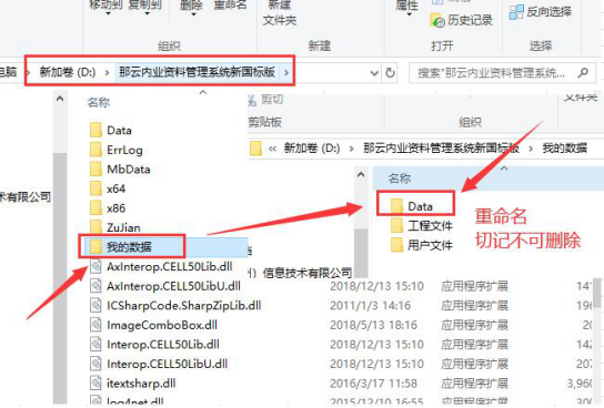 6.建立表格单机版 2.应用程序异常:未将对象应用设置到对象的实例。 双击新建表格时报错: 异常提示 "应用程序异常:未将对象应用设置到对象的实例。" 解决办法: 将个人的数据里的DATA重命名之后可以了(确定客户没有做个人示例表格及关联表格) 1.找到软件安装包位置:正常在D盘 单机版在“D盘:那云内业资料管理系统新国标版”目录文件里。 2.找到“我的数据”重命名我的数据里面的data数据名称,多加个数字区分,例如data1 3.修改后如下图:重新登录软件