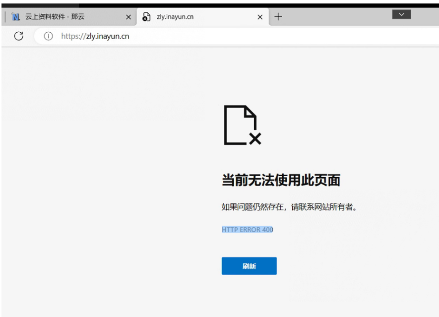 3.点击云上资料:当前无法使用此页面HTTP ERROR 400(win10的默认浏览器edg)
