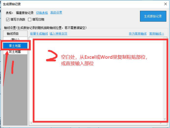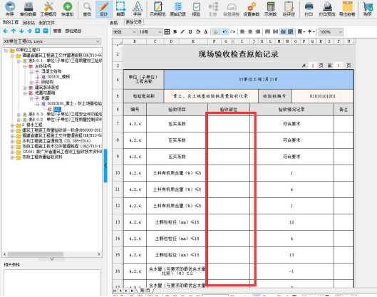 8.原始记录单机版 1.原始记录“验收部位”为空 原始记录“验收部位”为空问题 解决办法: 生成原始记录,根据选择容量填写轴线部位,例如下方,容量选择是素土地基在选着轴线项目时候,应选素土地基进行轴线部位填写。有多个容量时,需要选着多个轴线项目内容进行填写轴线部位。