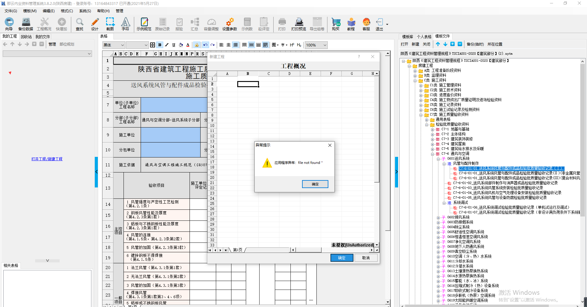 6.建立表格单机版 5.新建工程工程概况表格空白,异常提示 应用程序异常:file not found 新建工程工程概况表格空白,异常提示 应用程序异常:file not found 解决办法: 关闭软件,找到程序位置替换文件,重新打开软件就可以了
