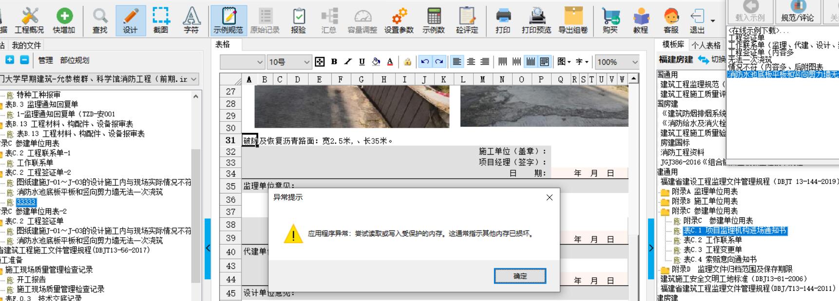 5.示例、规范单机版 3.应用程序异常:尝试读取或写入受保护的内存,这通常指示其他内存已损坏。 应用程序异常:尝试读取或写入受保护的内存,这通常指示其他内存已损坏。 解决办法: 自己做的示例表格和原有的表格表页数不同,建议查看表格编辑设置,重新新建示例或直接填写。