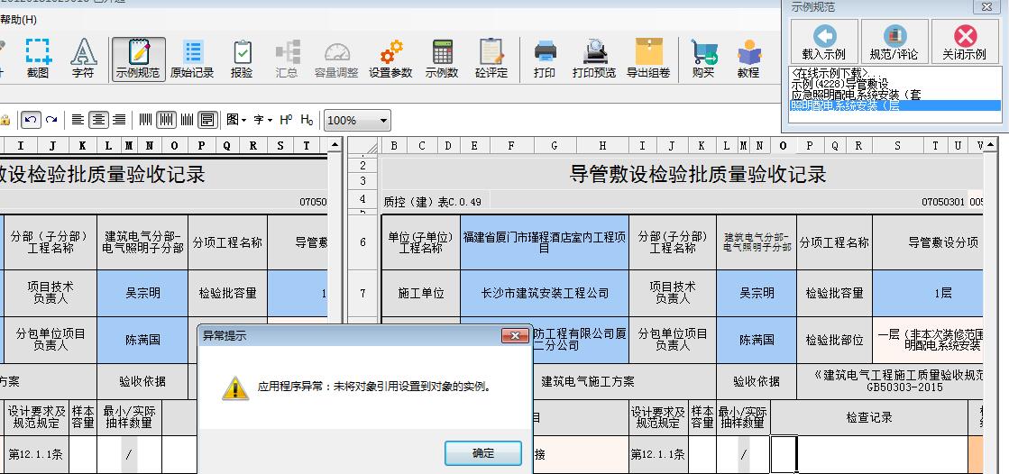5.示例、规范单机版 4.载入个人制作的示例表格,出现应用程序异常:未将对象引用设置到对象的实例。 载入个人制作的示例表格,出现应用程序异常:未将对象引用设置到对象的实例。 解决办法: 覆盖安装程序,重新打开软件就可以了。目前有3.8版本已解决该问题,版本还未发布。