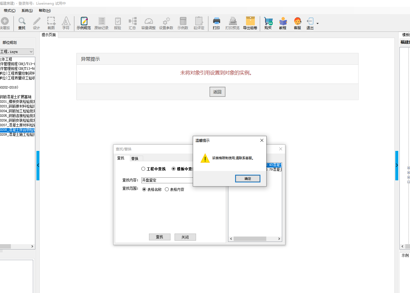 *1.点击查找搜索内容出现:该表格限制使用,请联系客服