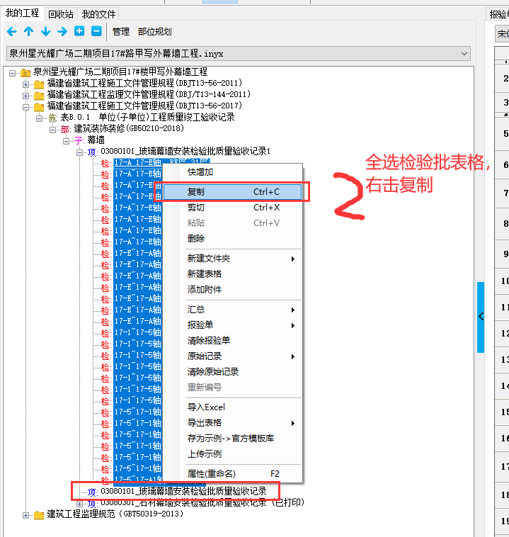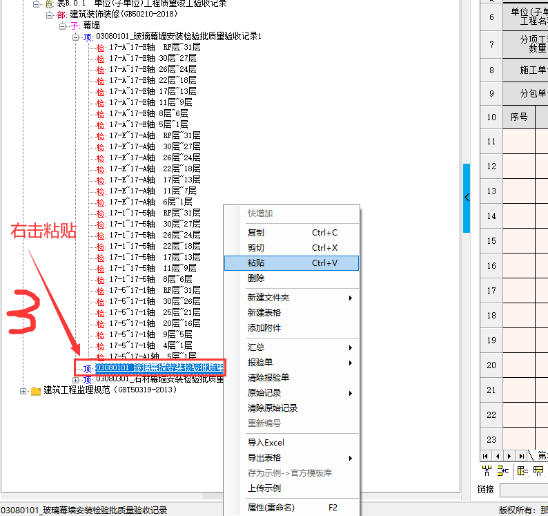 10.分部子分部分项汇总单机版 分项汇总时新增或删掉的表格没有重新汇总,点开区域变量内容变量为空 分项汇总时新增或删掉的表格没有重新汇总,点开区域变量内容变量为空 解决办法: 软件问题已修复,发3.8.3.0版本给客户替换,分项表格也要重新替换 替换绿色包方法同1.16方法,分项表格替换方法: 1.客户工程分项右击重命名 2.从右边的模板新建该分项底下的检验批,生成后删除检验批表格,全选检验批表格,复制 3.新建分项右击粘贴复制好的表格,重新汇总就可以了。